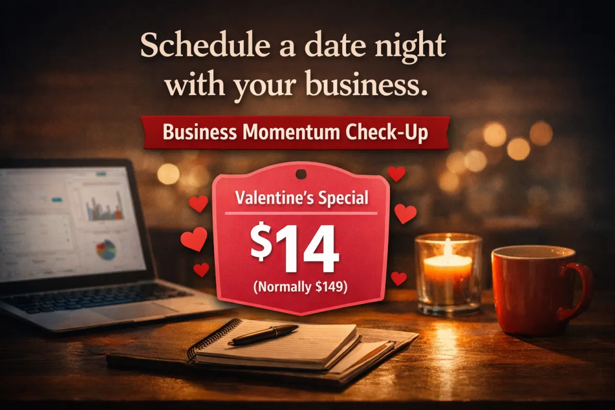 The Business Momentum Check-Up shows you what is stalled so you are not guessing where things are getting stuck. It makes clear what is moving, what is not, what kind of work fits the moment you are in, and what to work on next if you want progress to pick back up.
